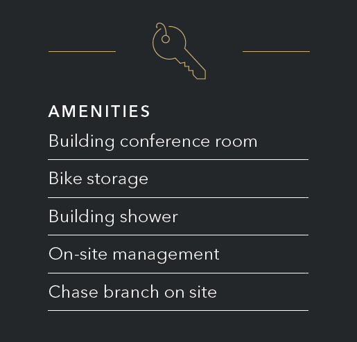 The building contains a Chase Bank branch, a parking garage with keycard and wireless access and postal pick-up and delivery. Many restaurants, coffee shops and deli’s are nearby. A secure bicycle storage area is located in the lower garage. Metro Transit’s Rapidride D Line on Third Avenue is only a few steps away.